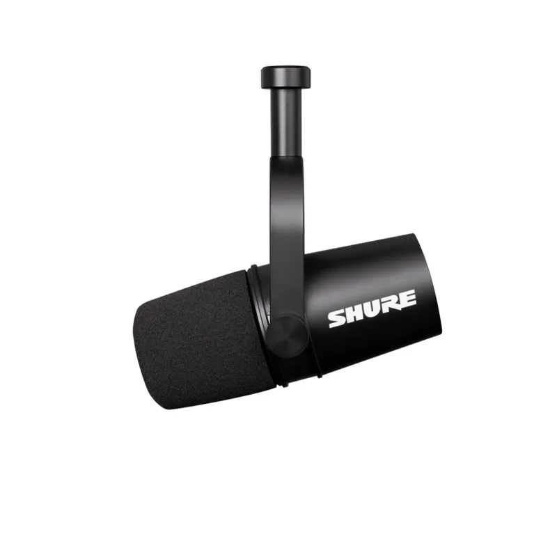 The Shure MV7-X is a professional dynamic microphone ideal for studio and live use. It has a compact design, measuring 164 mm in height, 90 mm in depth, and 153 mm in width, with a weight of 550 g.