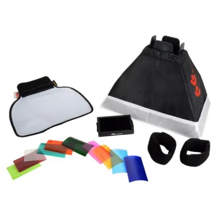 ;Softbox: The supplied softbox is 20 x 30 cm and works by softening and spreading the light emitted by your speedlite. The softbox illuminates the subject you wish to shoot.