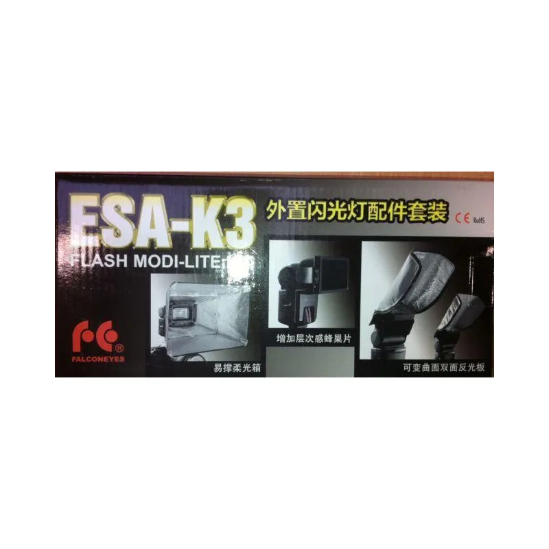 The Falcon Eyes ESA-K3 Speedlite Strobist Set is equipped with 3 different accessories to create various lighting effects with your speedlite. The ESA-K3 is complete with a honeycomb grid, a double-sided reflector and a lightweight, foldable softbox. All 3 accessories are equipped with Velcro, making them compatible with most speedlites.