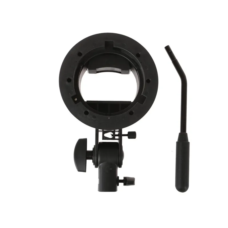 The SMDV SB-06 Speed Bracket allows you to use your reportage flash on various A-series softboxes from SMDV. The inside space of the SB-06 in which you place the flash unit measures 53 x 70 millimeters at the largest. The flash unit is then secured with a clamp that you tighten with a knob at the top. A handle is included to make it easier to aim the setup. The hole where you attach the handle can also be used to hold an umbrella.