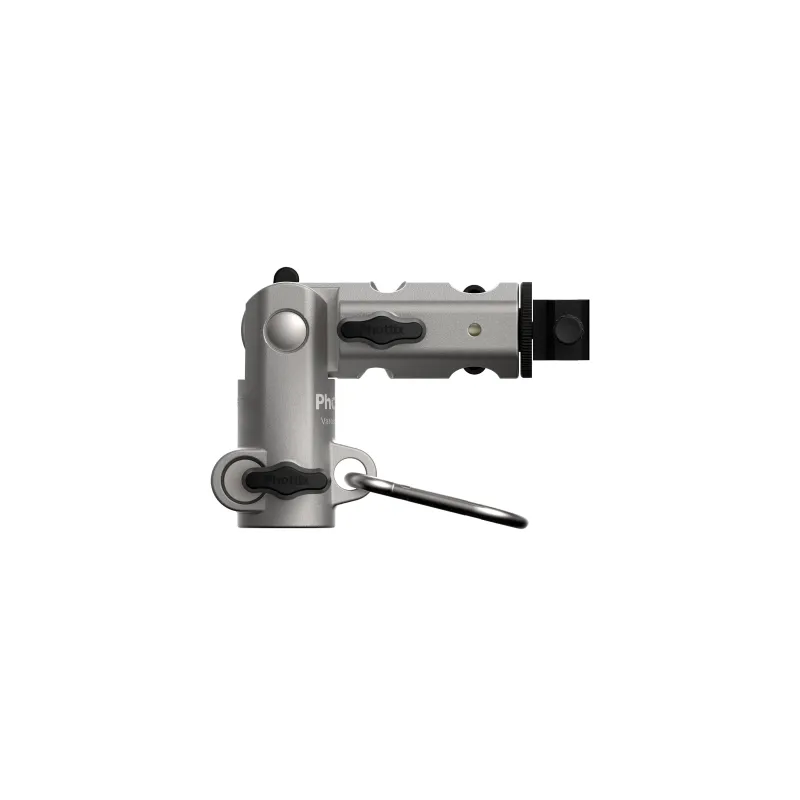 The redesigned Phottix Varos Pro BG’s patented locking mechanism to hold the bottom 3/8”and 1/4” female threaded insert security with 300% more locking force. The patented 180 degree tilting mechanism supports up to 30 kg. New locking features holds bottom lugs secure until locking button is released. Included is a hanging hole and clip included for use with a counter weight or other.