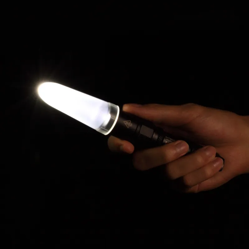 This Diffuser wand from Nitecore is attached to the flashlight bezel, and will soften the light output and broaden the flashlight's angle of visibility, which is ideal for tent illumination, signaling and map reading.