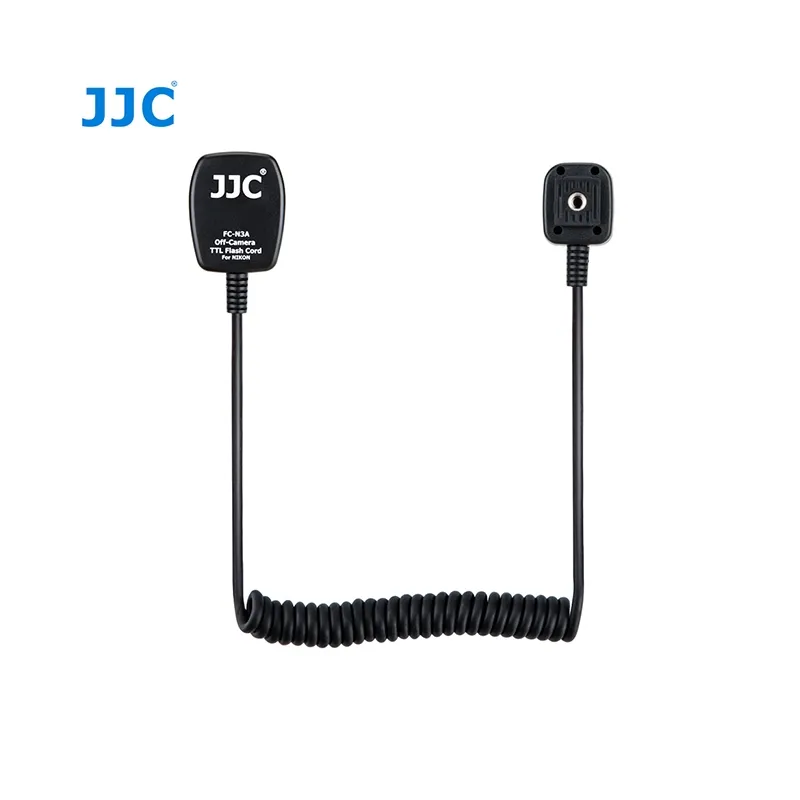 The JJC TTL Off Camera Shoe Cord FC N3 fits the Nikon camera hotshoe, and at the other end you can attach a flash unit so you can use the camera and flash unit up to 90 centimetres apart.,