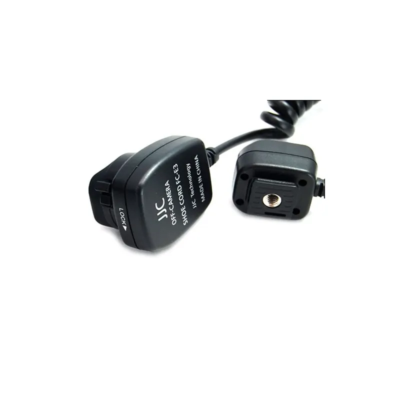 The JJC FC E3 Off Camera Shoe Cord fits onto the hotshoe connector of your Canon camera and attaches under the flash with the other end. This handy and inexpensive cable allows you to use the flash separately from your camera up to a distance of 90 centimetres. A 1/4 threaded connection is also provided.,