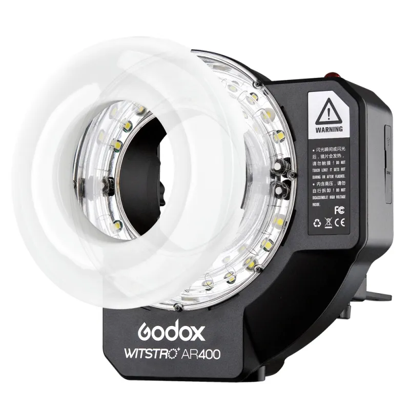 The Godox Witstro AR400 is a valuable addition to the popular Witstro series flash. The ring flash with a power of 400Ws and a guide number of 36 provides a powerful, shadow-free and even exposure of your subject in a compact and portable body.