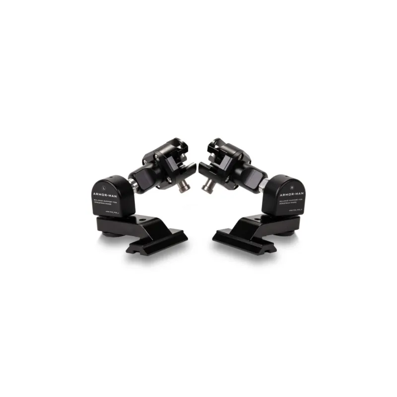 Armorman 3.0 Universal Gimbal Ring Adapter. If you have a ring-based gimbal, the Universal Gimbal Ring Adapters allow for an easy quick-release solution to attach and detach your gimbal to the Armor Man 3.0?s mechanical arms. These dovetail-based adapters slide onto each Armor Mans arms and then attach to the Universal Gimbal Ring Adapter Clamps to support your gimbals. When you want to secure the Armor Man to the gimbal, connect the arms to the preset clamps on the gimbal to start operating, and when you want to detach the gimbal, push in the adapters quick-release buttons to slide off of the clamps.