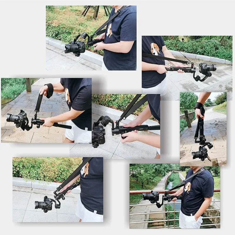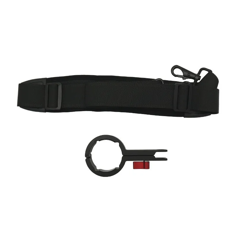 The Caruba Weight Release Strap + Gimbal Clamp for Ronin S provides flexible support to keep your arm from getting tired. The clamp is easy to mount and remove on your gimbal. The strap is adjustable in length and you attach it to the clamp using the two clips.