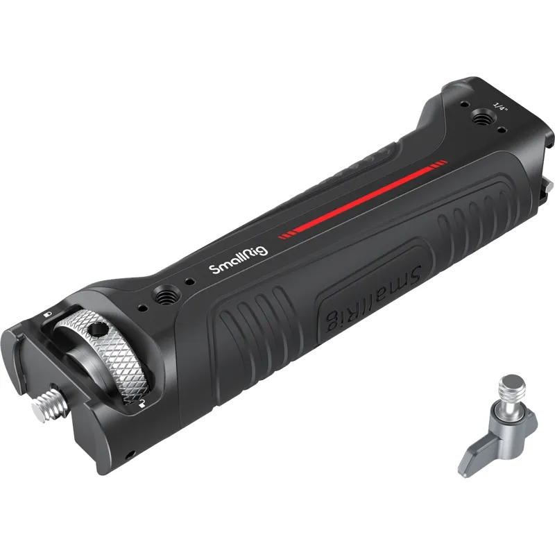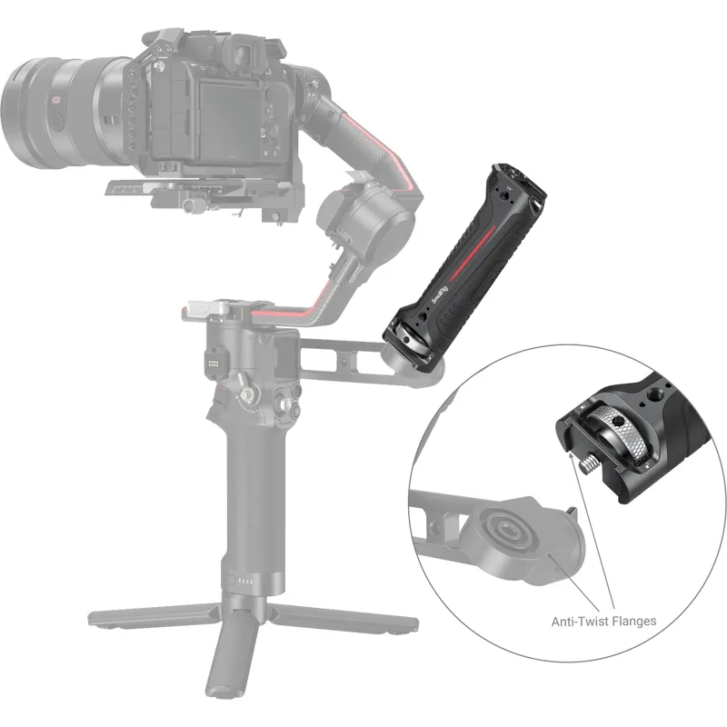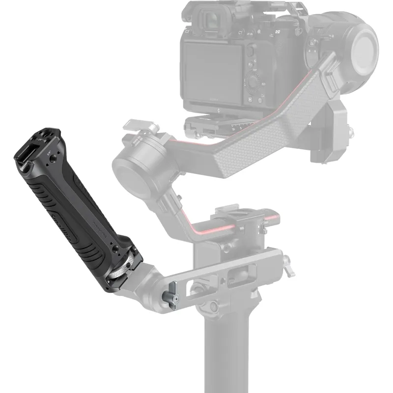 SmallRig Sling Handgrip for DJI RS 2 and RSC 2 Gimbal 3161 is specially designed to reduce arm fatigue when shooting at a low angle with the gimbal and provide accessory mounting points. The handle secures to the DJI R Briefcase Handle with a 1/4”-20 screw and adopts a raised edge to prevent twists. There are two 1/4”-20 threaded holes, one ARRI 3/8”-16 locating hols, and one cold shoe mount on the top of the handle for mounting Monitor Mount 2903 or 2905.
