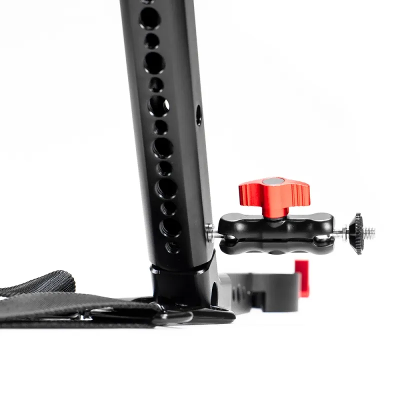 The Caruba Versatile Handle for DJI Ronin S makes your gimbal extra portable. The versatile design features several 1/4" and 3/8" mounting points. You can easily mount a microphone, monitor or lamp here. The handle comes with 2 magic arms. The shoulder strap offers extra comfort. The handle is made of aluminum and is lightweight.