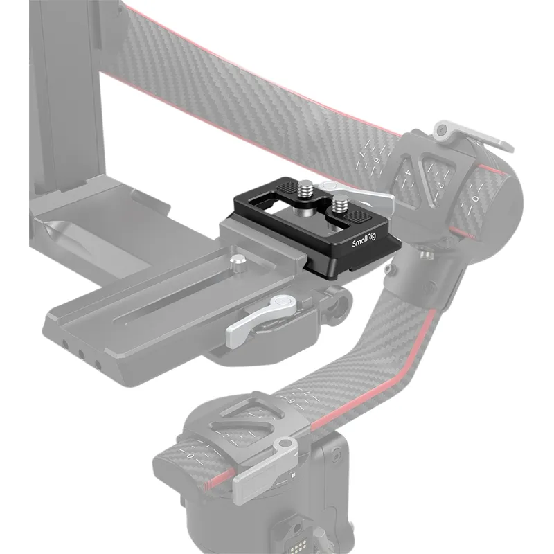 SmallRig Arca-Type Quick Release Plate for DJI RS 2 and RSC 2 Gimbal 3154 is designed to attach to camera cage with two 1/4"-20 screws to fit in RS 2 and RSC 2 Gimbals, and solve the twisting issue that the original Arca Plate only allows being attached onto the cage through one 1/4 screw. Compared with the original Arca plate, the plate 3154 is extended 10mm longer and increases the range for left and right adjustments to mount cameras in special shapes, such as BMPCC 4K camera equipped with a cage.