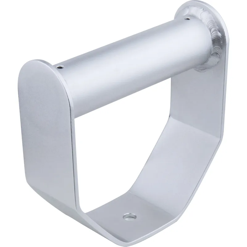 Made of 5mm thick gauge aluminum alloy and welded with a 50mm diameter tube, this stirrup head is designed for mounting lighting fixtures with a clamp or coupler. It features a 12.5mm diameter hole on the bracket for attaching a telescopic hanger or drop pole. Available in black and silver paints.