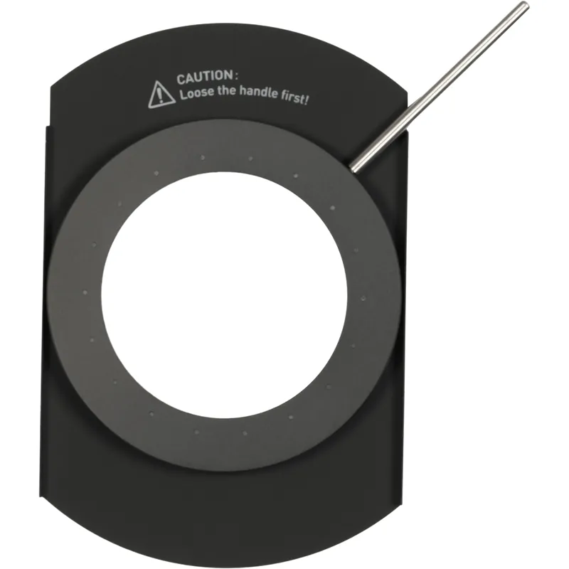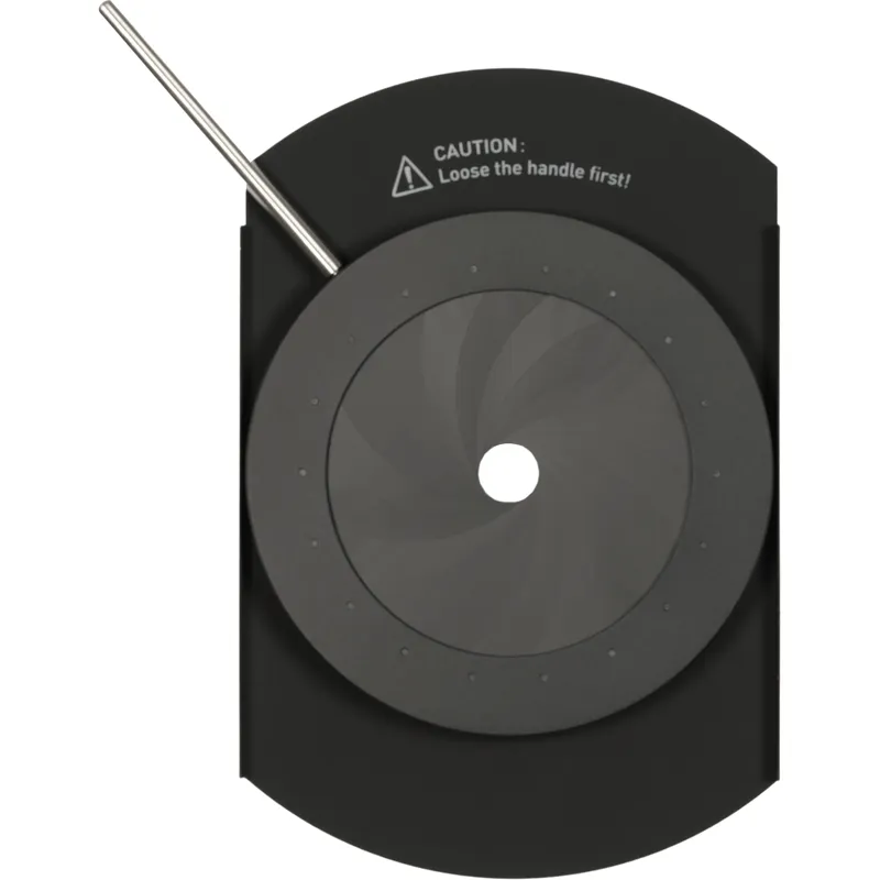 The adjustable iris diaphragm is built with durable materials and 18 blades, creating a beautifully rounded beam shape. Users can slide the built-in rod to adjust the beam size and tighten it to lock in place.