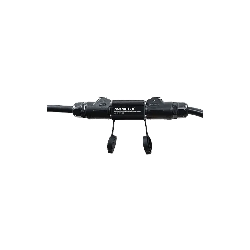 Used to couple two DC connection cables to extend the power supply distance. The symmetrical design at both ends of the coupler eliminates the need to distinguish the direction of cable plug connection. The coupler features an aviation connector compatible with a self-locking aviation plug, enabling quick and stable connection. It boasts an excellent protection rating (IP65), making it suitable for use in rain, snow, and dusty environments, ensuring electrical safety on set. It is equipped with waterproof covers to effectively prevent external moisture from entering in case of improper storage.