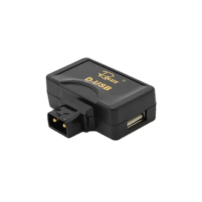 The D-USB adapter from Rolux is a handy tool that allows you to use accessories with a female USB-A connector and standard D-tap connector simultaneously with your V-mount battery. The D-USB adapter is suitable for any V-mount battery with D-tap connector. You simply connect the D-USB adapter to the D-tap connector, which has both a USB-A and D-tap port. The USB port output is 5V and up to 1.6A. Both the input and output of the D-tap are 11-17V and up to 10A.