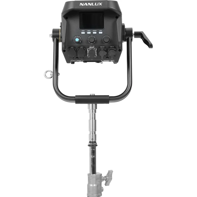 The LEDs construction and design are made with professional use in mind. Both the fixture and power supply are IP55 rated to withstand even the harshest weather conditions. It incorporates a new generation of adjustable fan control systems with four different modes to choose from depending on the shooting scenario: Smart, Full Speed, Low Speed, and Off. When shooting in 100 Smart mode, the noise level is at 25dBA. The yoke has a 15° tilt adjustment to make it easier with modifiers attached.