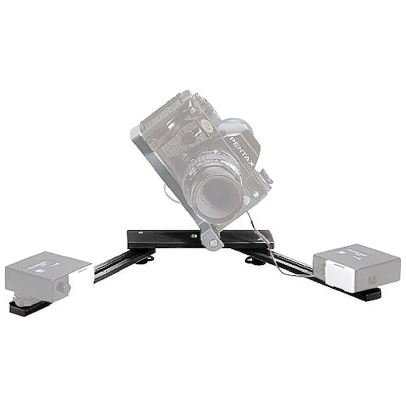 Allows two flash heads to be mounted with a camera onto a tripod head. Attachments: 3/8" and 1/4" female threads and 1/4" camera fixing screw.
