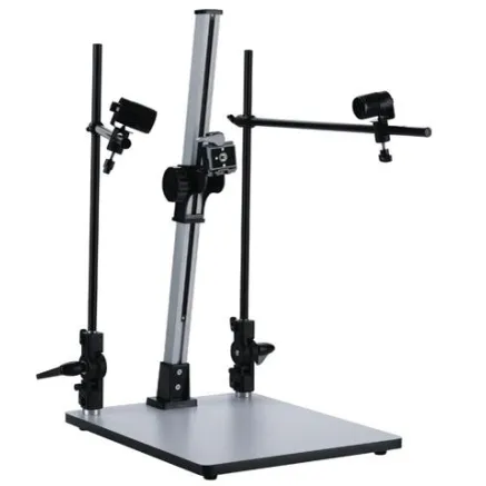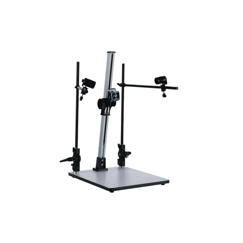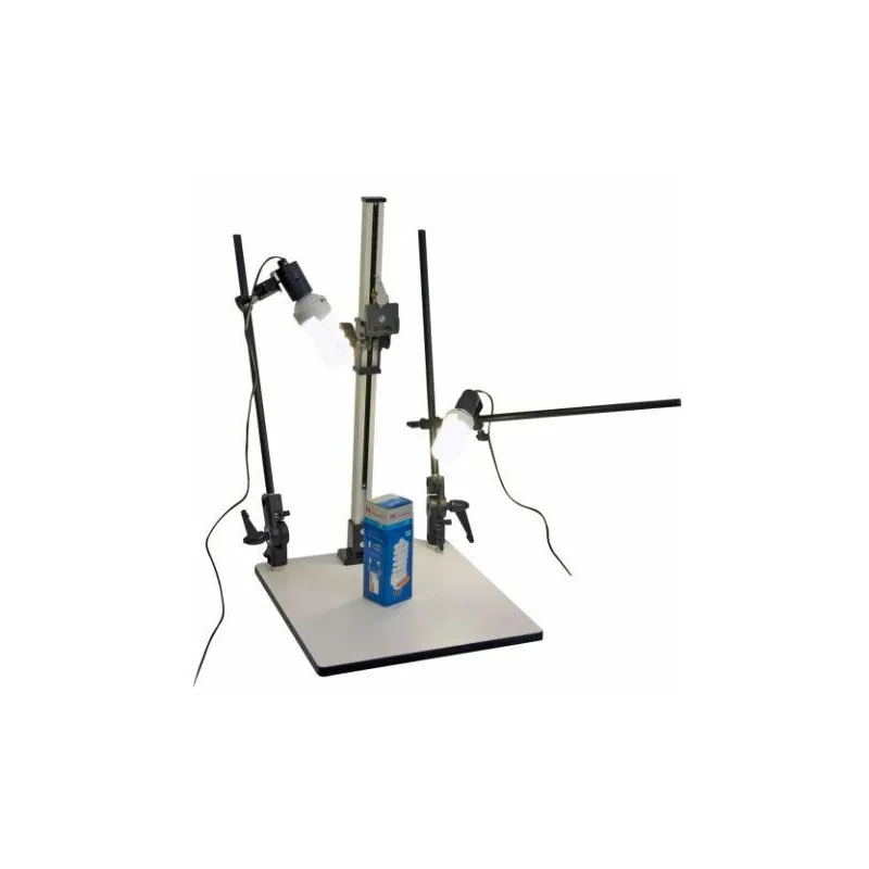 The Falcon Eyes CS-730 Copy Stand is equipped with 2 lamp holders, which can be placed anywhere around the table to obtain your desired lighting. The CS-730 is also equipped with an adjustable camera mount, enabling you to fix your camera in the right position. The camera can be set to a maximum height of 65cm and the tabletop has a dimension of 40 x 48cm. Both lamp holders are equipped with an E27 socket (max. 250W) and the compatible lamps can be found in the optional accessories tab below.