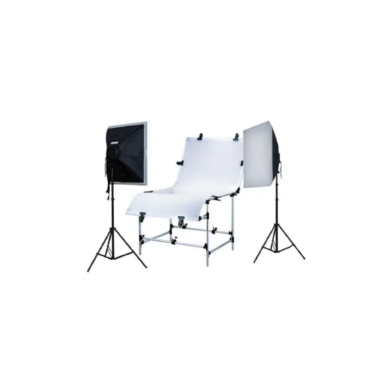This set contains a ST-1020A photo table and a LH-ESB6060K daylight set. A great combo to produce professional product photos. The daylight set consists of two lamps, to reduce shadows. The photo table contributes to a egal white background.