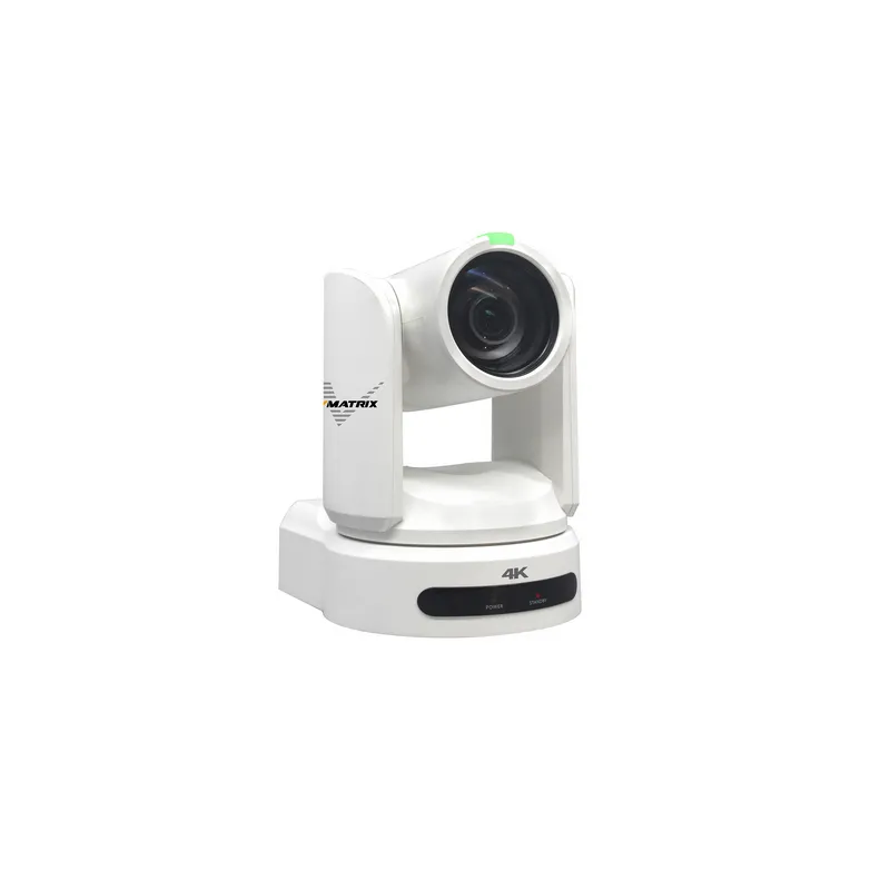The AVMatrix EAGLE P20-12G-NDI PTZ Camera in white is a professional-grade camera ideal for live streaming, broadcasting, and video production. It features a 1/1.8 CMOS sensor, 20X optical zoom, and 12X digital zoom, delivering stunning 4K UHD resolution.