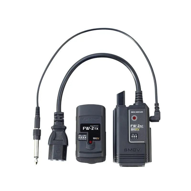 The SMDV FW-2 AC is an eight-channel trigger set for triggering a flash head from a distance of 20 to 30 metres. The set works with radio waves in the 2.4GHz frequency band. You work with a sync speed up to 1/180s.