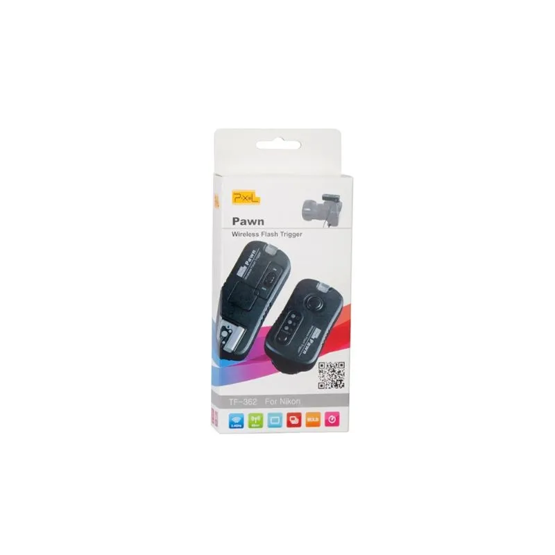 The Pixel TF-362 Pawn Radio Trigger Set allows you to wirelessly trigger your camera, speedlite and/or studio flash unit. The TF-362 is compatible with most Nikon cameras, most Nikon speedlites and most Studio Flash Units. The TF-362 uses a 2.4GHz radio frequency between the transmitter and receiver with a range of 80 meters, providing you with freedom of movement. Further, the 2.4GHz radio frequency enables you to trigger multiple receivers and speedlites, effortlessly.