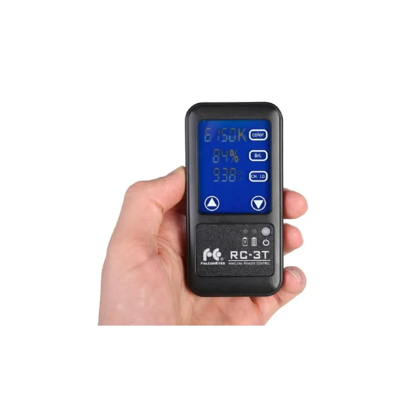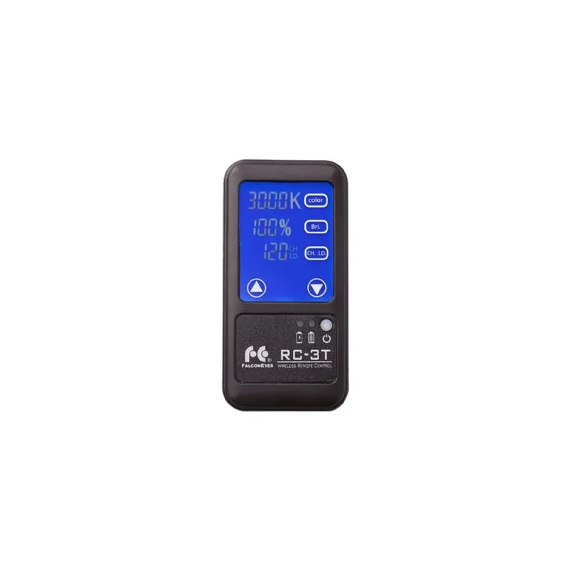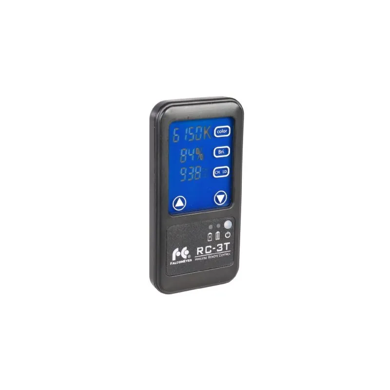 The Falcon Eyes RC-3T LED Remote Control for RX-TDX, CLL-DR and SO-TDX Series is suitable for the LED continuous lighting lamps in the RX-TDX, CLL-DR, SO-TDX and LP-TD series. The LCD display on the remote mirrors the display on the back of your LED lamp, allowing you to wirelessly control your lamp from a distance. Further, the remote allows you to wirelessly adjust your continuous lighting settings such as colour temperature and output power.