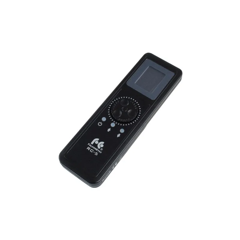 The Falcon Eyes RC-5 LED Remote Control is suitable for all the lamps in the DESAL, new RGBW Flex and T-Series. The display on the remote mirrors the display on the back of your LED lamp, allowing you to wirelessly control your lamp from a distance. Further, the remote allows you to wirelessly adjust your continuous lighting settings such as colour temperature and output power.