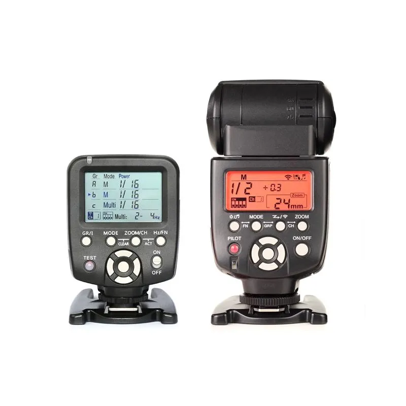 Works with YN560 III and Later Flashes Supports RF602, RF603, RF603 II, & RF605 Frequency: 2.4 GHz Range: 328' 16 Channels and 6 Groups Remote Power and Zoom Control Updated LCD Layout; Quick-Locking Foot 2.5mm Sync Port Runs on Two AA Batteries