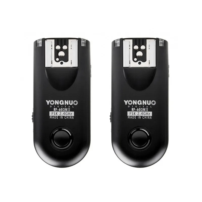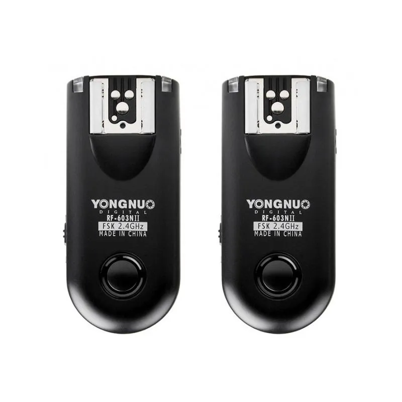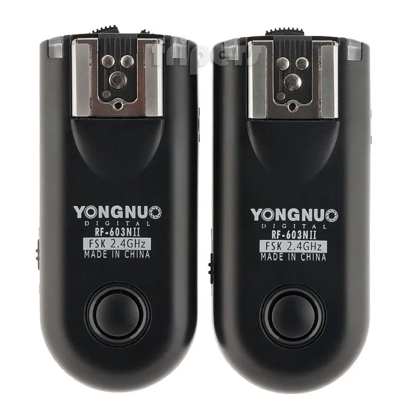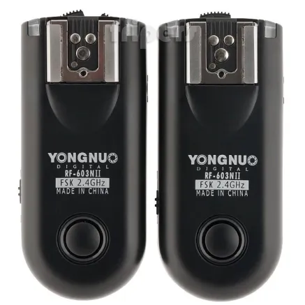 Yongnuo RF-603 II allow wireless radio control of the camera and triggering of system and studio lights from up to 270m away. It has a radio remote control function for triggering the camera.