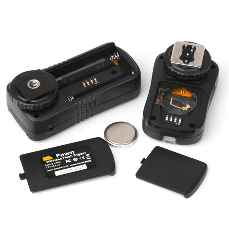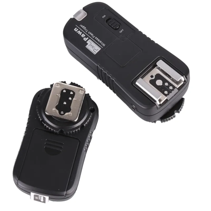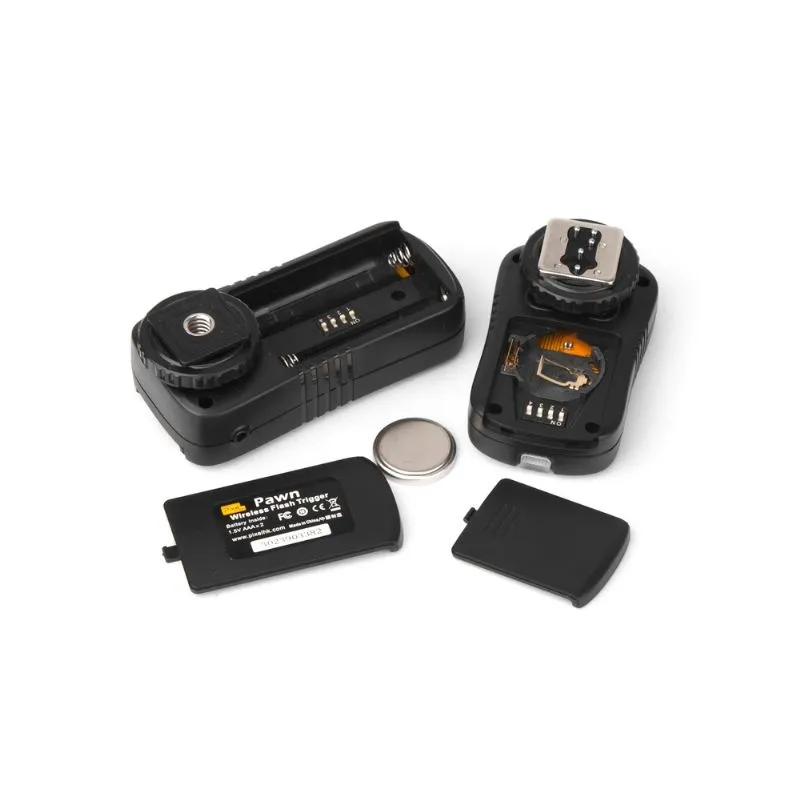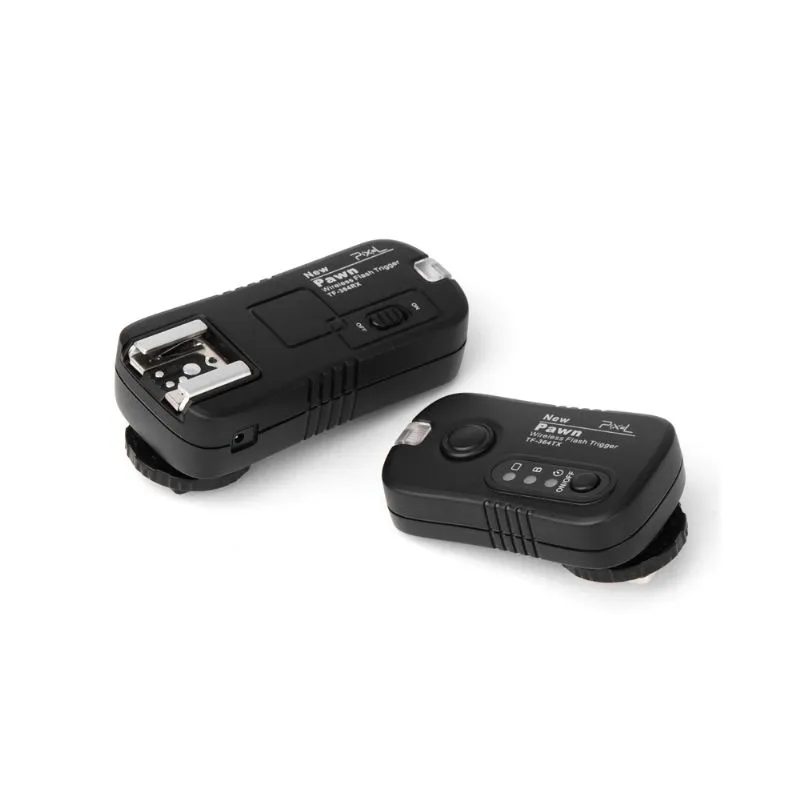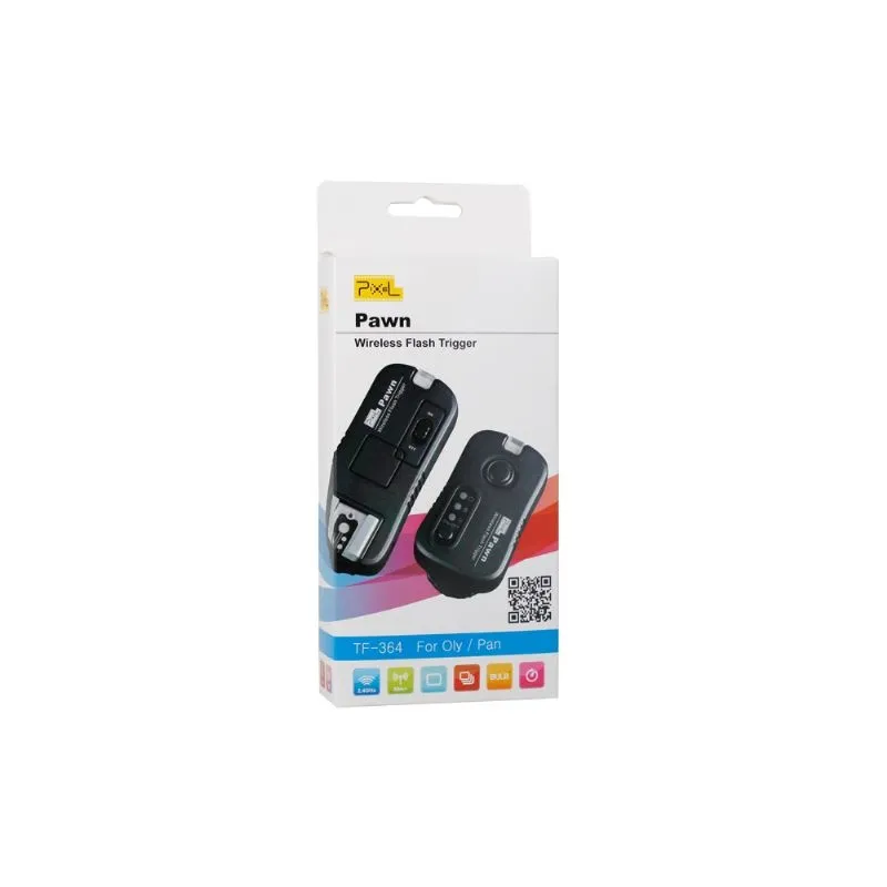 The Pixel Radio Trigger Set Pawn TF-364 for Panasonic is a wireless remote control flashgun for Panasonic cameras and Panasonic camera flashes. This system not only lets you wirelessly control your studio flash, but your camera flash as well and even your camera! The wireless control works via a radio frequency between transmitter and receiver. This Pixel PawnTF-364 kit supports up to 1/250s shutter speed. With the help of multiple receivers, you can also control multiple cameras or camera flashes.