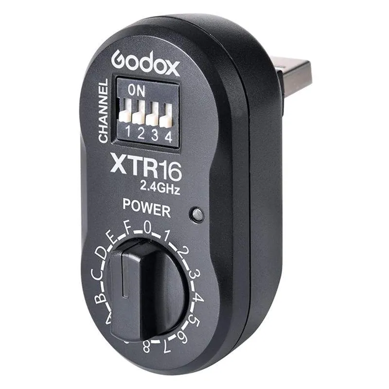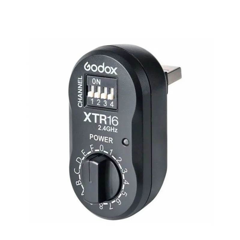 A companion to the XT16 Wireless Power-Control System, the XTR16 Wireless Power-Control Flash Trigger Receiver from Godox mounts directly to the Wireless Control Port of select flashes and enables remote power control over the flash. It features a reliable 2.4 GHz frequency as well as an impressive range of 328'. Users can also enjoy a choice of 16 channels and they can sync at speeds up to 1/250 second. Additionally, it does not require any batteries because it receives power via the flash connection.