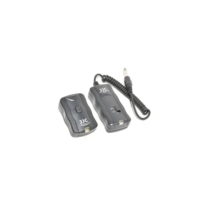 The JJC JF-G1S Wireless Flash Trigger has been designed to let your studio flash go off. This set does not work for reporting flashes, since there is no connection for a hotshoe on the recipient. You can plug in the receiver directly into your flash head. This set works up to 100m!