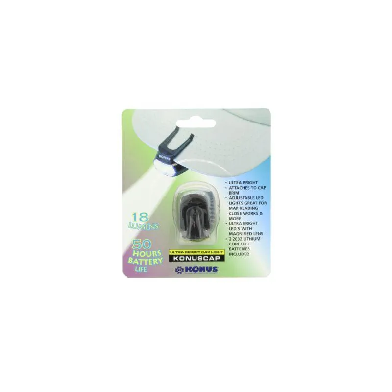 The Konus Konuscap Flashlight is a compact flashlight equipped with 3 LED lights with a maximum output of 18 lumens. The LEDs provide a reliable and constant light output suitable for all situations. The Konuscap is equipped with a clip enabling you to clip the flashlight onto your cap and have your hands free. The Konuscap is suitable for use in various situations such as survival, hikes, emergency roadside situations, jobs, caving and many more.