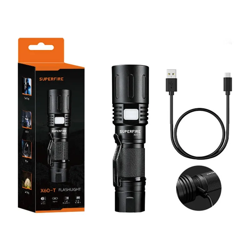 The IP34 protection rating means that you can use the flashlight in almost any conditions without worry. The device is equipped with a durable gasket that prevents water from getting inside. A light rain, an accidental splash, or even a sudden downpour - with the help of the Superfire X60-T you will find your way in the dark regardless of the situation.