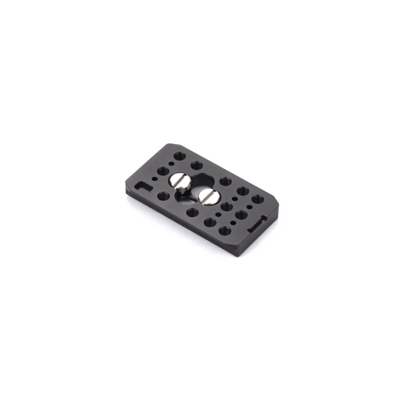 Secure your full camera cage kit to your quick release system with the black Bottom Plate for Panasonic GH6. This bottom plate is designed to attach to the 1/4"-20 threading at the base of the cage while still leaving plenty of room to tighten or loosen the screws that are inserted into the base of the camera and hold it in place.