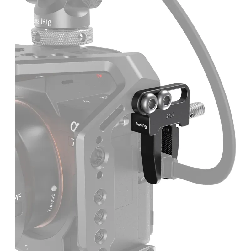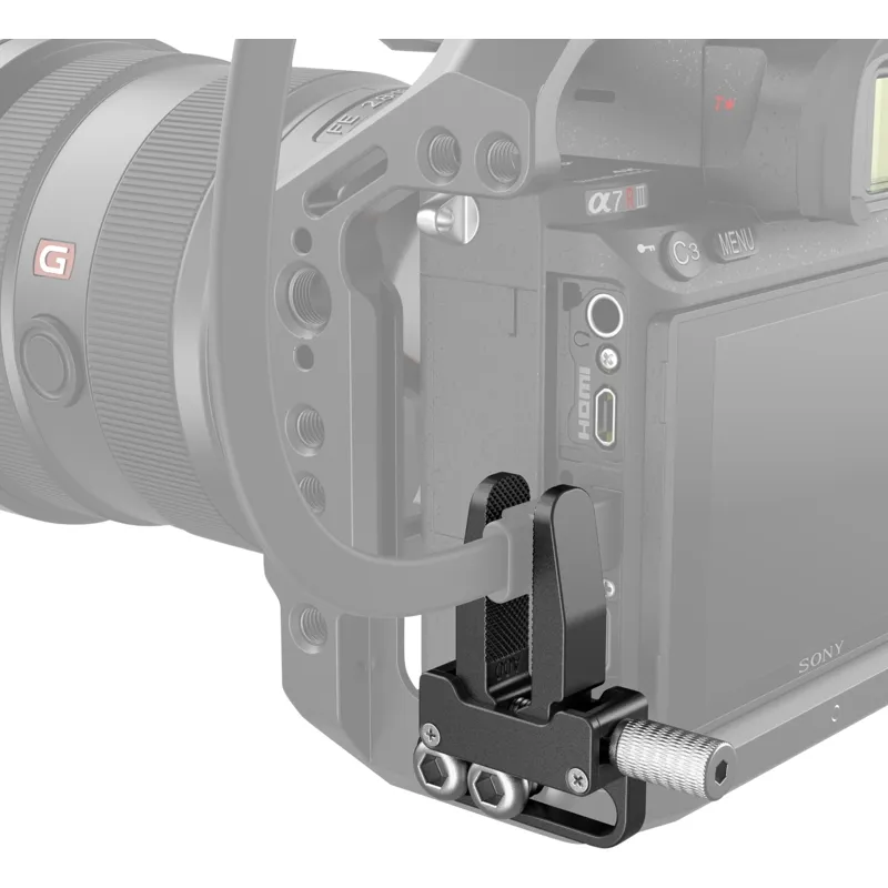 SmallRig HDMI Cable Clamp for Select Camera Cage 3637 is designed to prevent cable disconnection from damaging the HDMI port and interrupting transmission during filming. It is fixed firmly to the left side of the cage via two 1/4 20 screws. The HDMI connector can be clamped by tightening the thumbscrew. It is compact, lightweight and secure.,