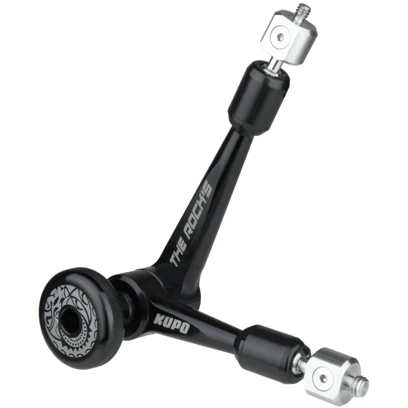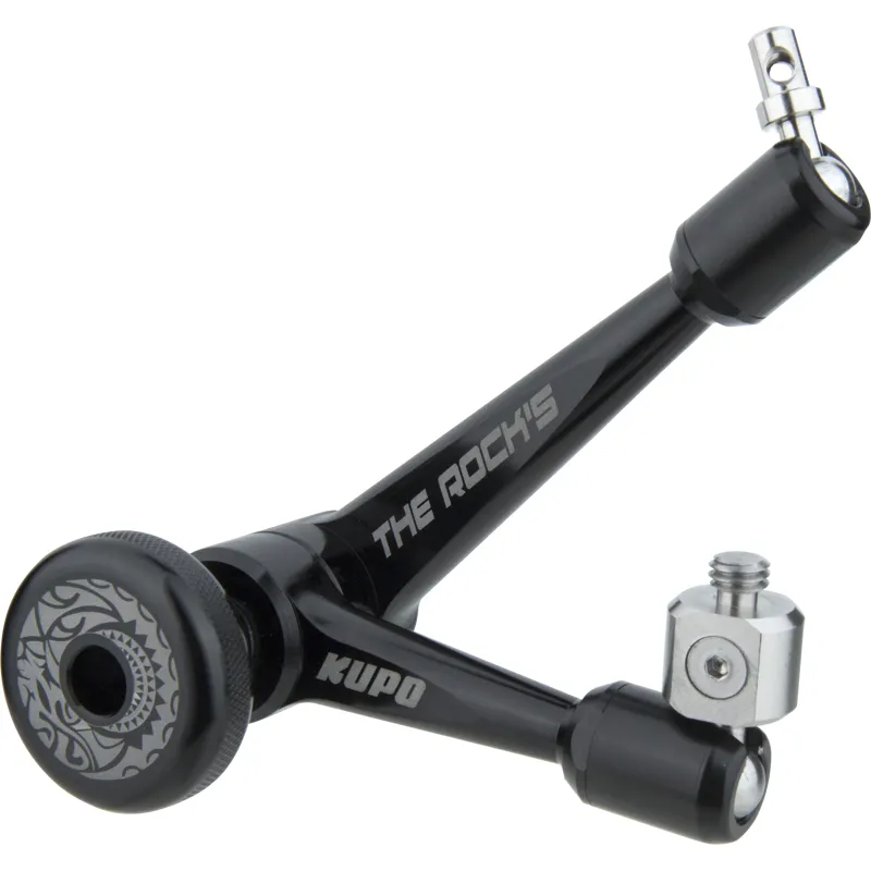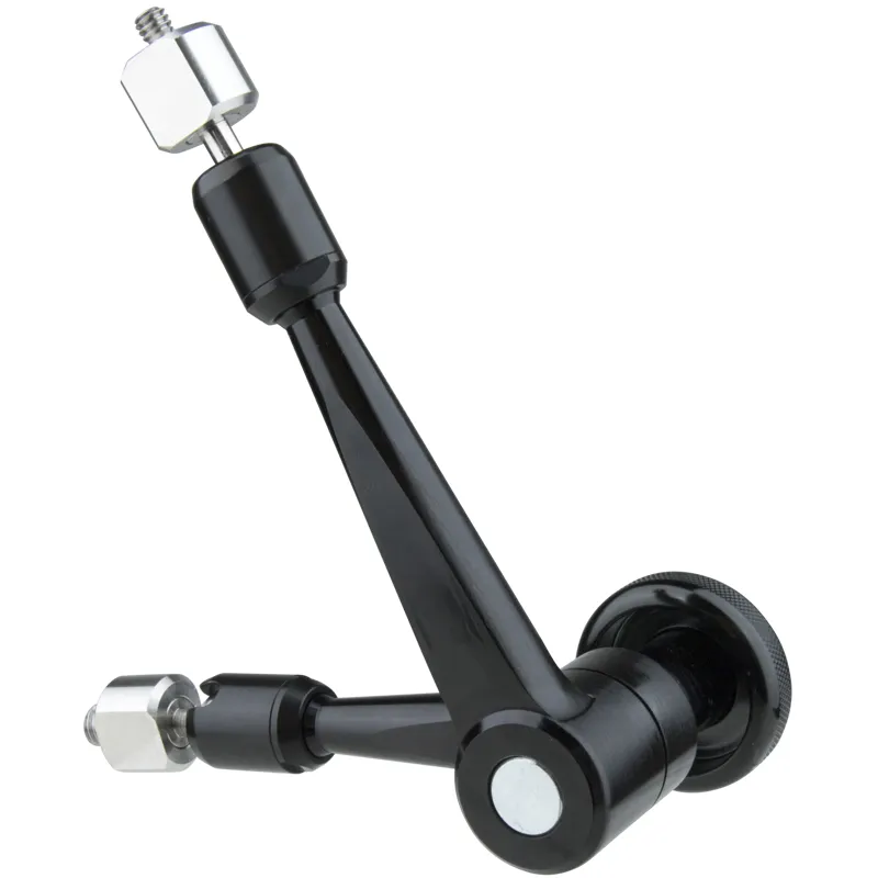 The friction wheel controls ball-joint tension simultaneously, making the arm handy and convenient to operate. The ends are engineered for 360-degree rotation plus 90-degree pivoting, providing great versatility for easy positioning. One end features a 1/4-20 male stainless steel accessory tip, and the other end has a 3/8-16 male stainless steel accessory tip.
