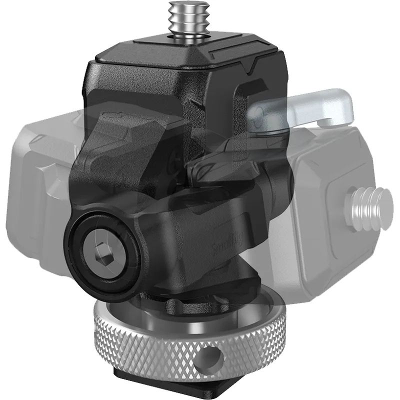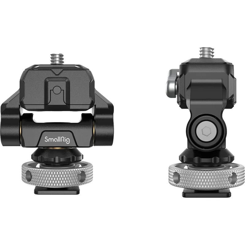 SmallRig Swivel Monitor Mount 3514 locks into place via a cold shoe at one end and attaches to a monitor via a unique SmallRig quick release plate at the other end. It swivels 360° and tilts 170°, and thus stops at any angle. 3514 has a dynamic load capacity of 1.5kg and its damping of pivot is adjustable through spanner. Features rubber pads on the top to prevent scratches and increase friction.