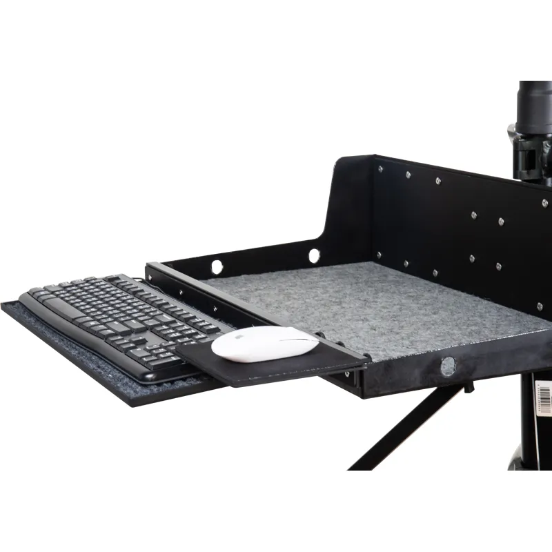 This mouse holder with pad is fixed with a rail clamp, allowing you to work comfortably with a mouse on the camera cart. The rail clamp is easy to fit onto the edge of the shelf on the cart, using tightening knobs that accept a maximum thickness of 6mm on the side.