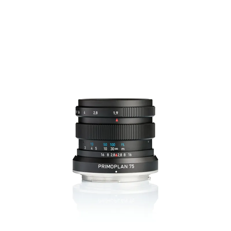 Characterized by its speed and portrait-length field of view, the Primoplan 75mm f/1.9 II from Meyer-Optik Gorlitz is a sophisticated, yet simple prime for Canon EF-mount cameras. The bright f/1.9 maximum aperture pairs well with the short telephoto focal length to allow working with shallow depth of field and selective focusing techniques, and the fast aperture also benefits working in difficult lighting conditions. Its manual focus design further offers control when focusing down to 2.5', and a 15 rounded-blade diaphragm contributes to a smooth bokeh quality. The five elements, four groups optical design makes use of Schott glass for a high degree of clarity, and an O'Hara Anti Reflex Coating has also been applied to limit flare and surface reflections for improved contrast and color accuracy. Additionally, the lens features an anodized aluminum housing that is durable, lightweight, and contributes to smooth, silent focusing performance.