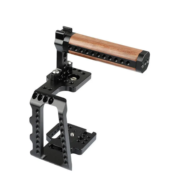 Caruba Half Cage with Wooden Top Handle for BMPCC 4K With the Caruba Half Cage with Wooden Top Handle, making videos with the Blackmagic Design Pocket Cinema Camera 4K becomes even easier and more versatile. Easily mount accessories such as microphones and monitors and hold the camera comfortably by the wooden handle.