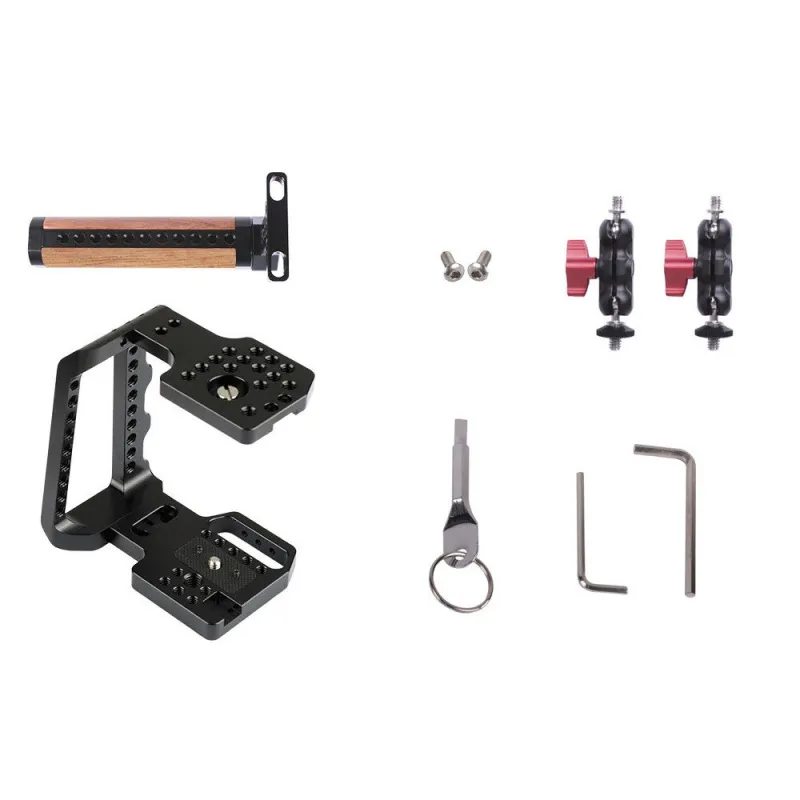 Using various 1/4 "and 3/8" mounting points and a cold shoe connection, you can attach various accessories to the cage. Two mini magic arms are included to secure accessories in the right place.