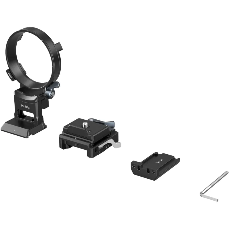 Designed for select Sony A-series, FX3, and FX30 cameras, this Rotatable Horizontal-to-Vertical Mount Plate Kit from SmallRig quickly switches your camera between horizontal and vertical modes without adjusting the optical axis of the lens. The kit gives full access to the camera's LCD flip screen, buttons and ports and is compatible with Arca-type and Manfrotto RC2 tripod heads, as well as DJI RS-series gimbals. Operation is simple, and the lens collar mount plate rotates 90° by merely unlocking a knob to switch between horizontal and vertical shooting. Additionally, the unit features multiple mounting points including a strap slot, QD socket, and 1/4"-20 and 3/8"-16 holes.