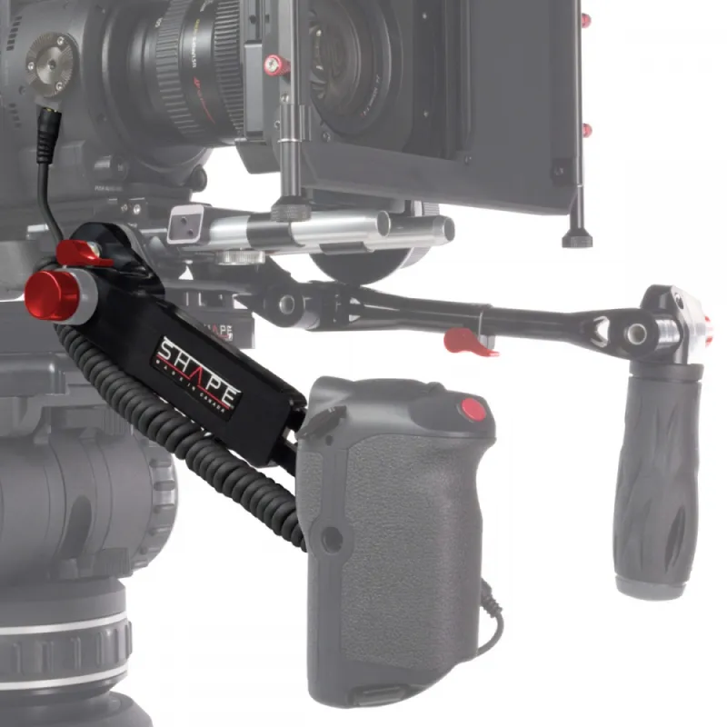 The Canon C200 remote extension handle from SHAPE offers an adjustable arm extension for the side hand grip provided with the Canon C200. It features SHAPE's patented Push-button Technology for easy angle adjustment and 360 degree rotation. The extendable arm is equipped with a ratchet key to easily adjust the length of the arm.