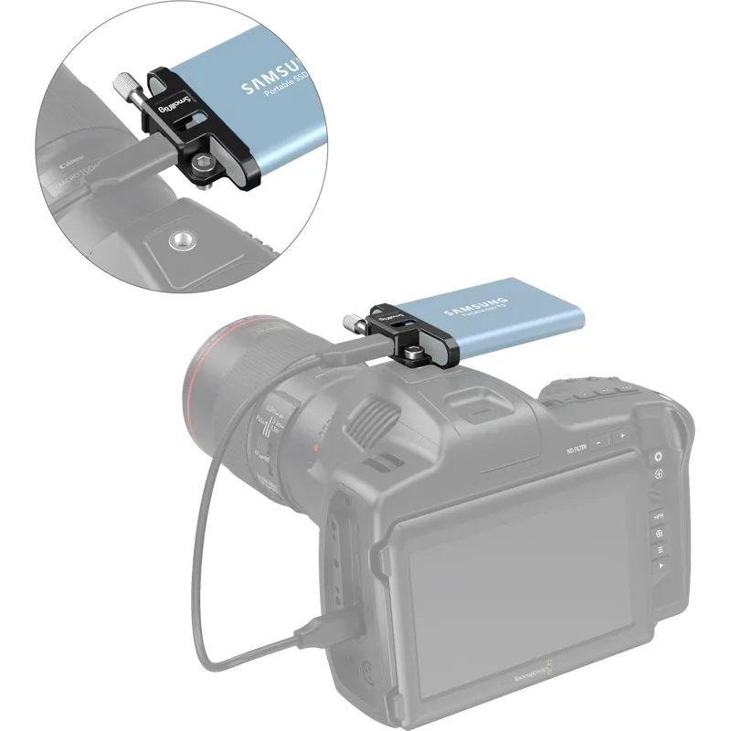 SmallRig T5 SSD Cable Clamp for BMPCC 6K Pro 3300 can be fixed via one thumb screw to protect SSD USB-C cable and prevent disconnection during shooting. The clamp is compact, space-saving and easy to carry around.