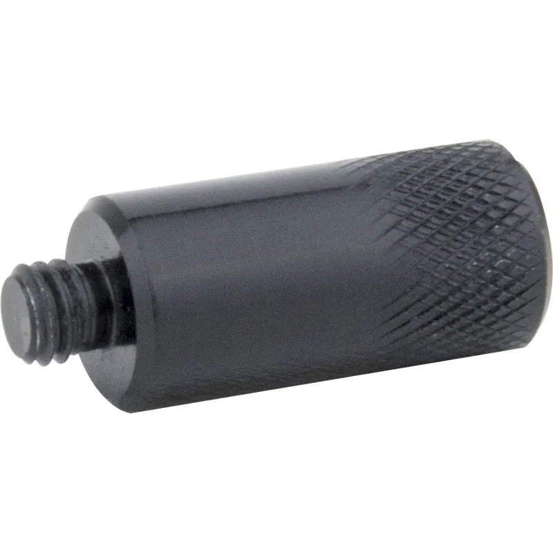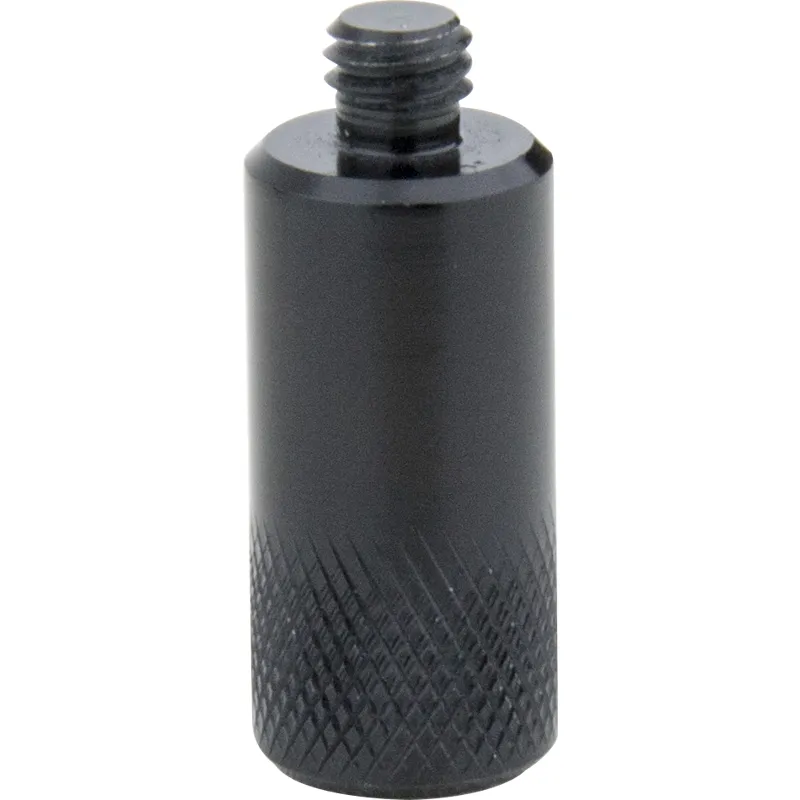 The V-lock extension handle is measured at 2.5 cm in length and 1 cm in diameter. The round extension, constructed from aluminum, features a knuckled finish at the end, making it easy to mount on the base by thumb turning.