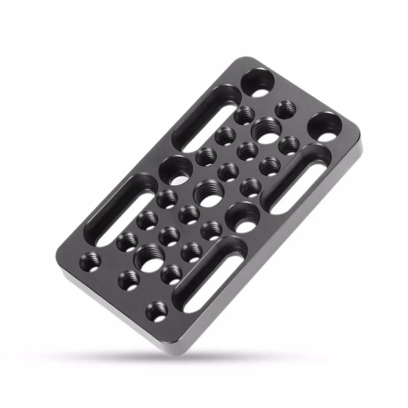 This is a longer version of easy plate. This easy plate is equipped with 1/4''-20 and 3/8"-16 threaded holes in standard spacing (9mm center to center). It can be mounted on SmallRig railblocks, dovetails and short rods. It works as a switching plate when attached to the bottom of a dslr cage. Material(s): Aluminum Alloy Net Weight: 70g Package Includes: 1 x Baseplate 2 x 1/4" Screw 1 x Hex Spanner