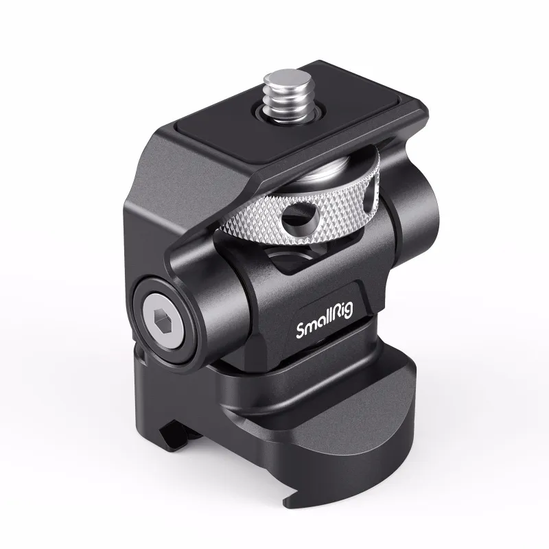 SmallRig Swivel and Tilt Adjustable Monitor Mount with NATO Clamp Mount 2906 is designed to hold your monitor onto the camera cage or other mounting system via NATO clamp. It features 1/4”-20 screw on the top for monitor, light, or microphone. The holder enables to swivel 360° sideways and tilts 170° with a free stop in any position. The tightness of each axis is adjustable via the Allen wrench. The robust mount is CNC-Machined Aluminum and can support 5” and 7” monitor up to 1.5kg. The swivel and tilt mount has protective rubber padding on top and includes an Allen wrench for tightening the mounts for further security.
