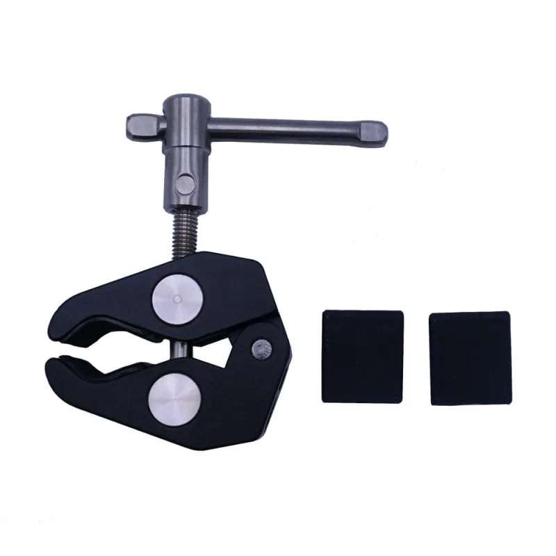 The Caruba Clamp is an universal clamp with a load capacity of 4kg that is ideal for in the studio. The clamp comes with two extra rubbers. These protect the surface of the object on which you use the clamp.