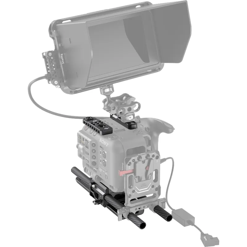 SmallRig Pro Kit for SONY FX6 3225 provides the solution to quick switch between tripod shooting and handheld shooting. Two top plates fit the original handle and come with multiple mounting points such as 1/4”-20 threaded holes and ARRI 3/8" -16 locating holes to support magic arms and handles. It comes with an ARRI baseplate that is compatible with dovetail plate and adjustable based on the center of gravity of camera. Manfrotto quick release plate on the top of the baseplate enables switch between tripod mode and handheld mode.